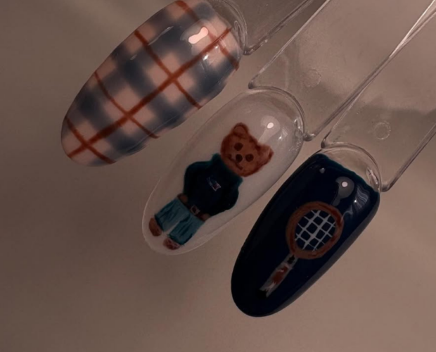 Vale lembrar que o termo “estilo Ralph Lauren” carrega uma herança muito clara: polos impecáveis, camisas oxford, suéteres de tricô, brasões universitários e uma alfaiataria que equilibra tradição e modernidade. Essa identidade preppy, que mistura esporte e refinamento, encontra nas unhas uma extensão natural. O azul-marinho remete ao universo náutico; o vinho profundo reforça a sensação de tradição; o nude atua como base neutra sofisticada. A diversão, no entanto, fica por conta dos códigos da casa, como o Polo Bear e as raquetes vintage.